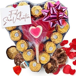 Corazon de Bombones Ferrero Rocher. 25 Unid. Kinder Shochobons y Super Piruleta. Regalo Ideal. [IAMI]
